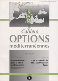 Chataigner J. (ed.). Economie du riz dans le Bassin Méditerranéen . Montpellier : CIHEAM, 1996. 160 p. (Cahiers Options Méditerranéennes; n. 15(2)). Séminaire sur l'Economie du Riz dans le Bassin Méditerranéen, 1994/12/15-16, Córdoba (Spain).